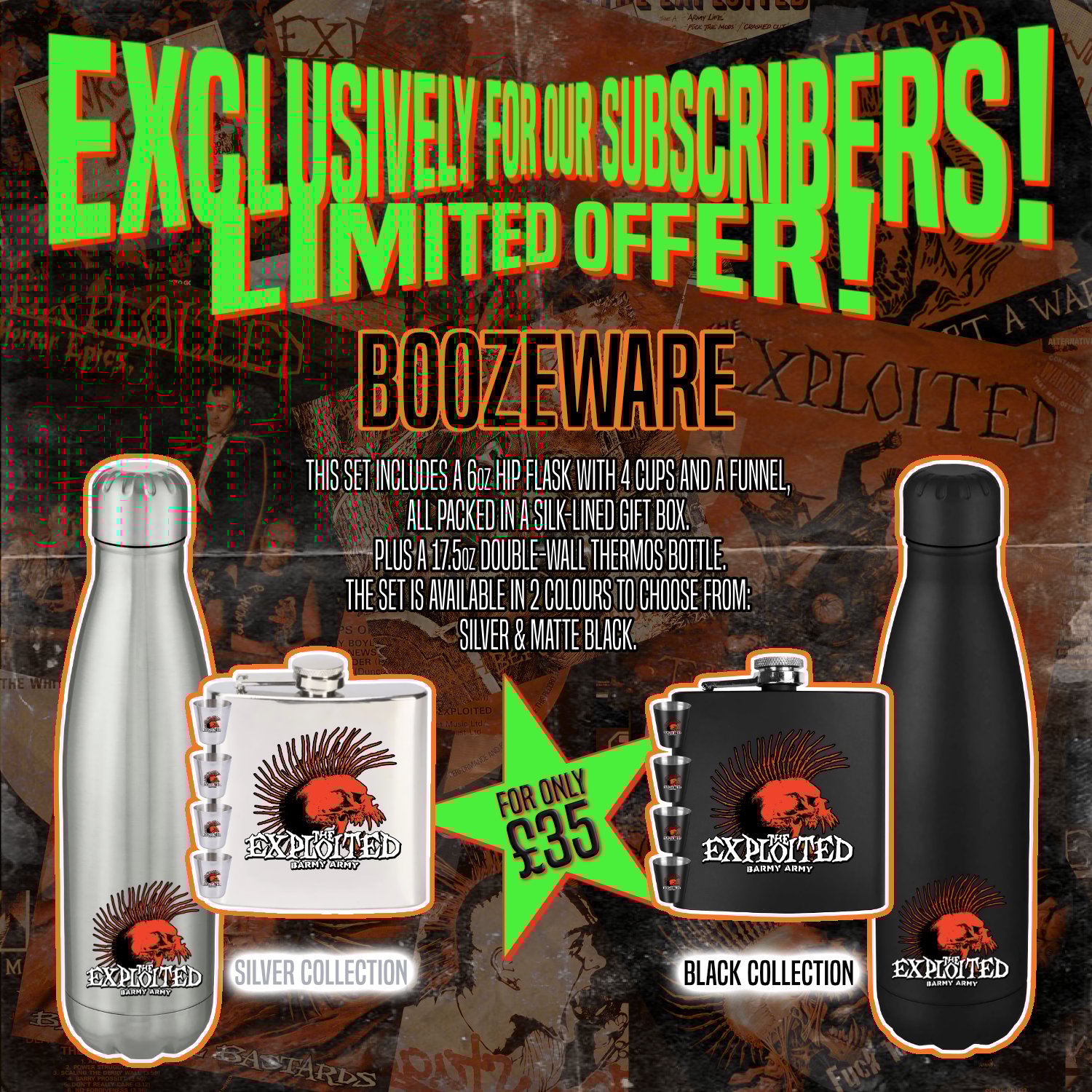 The perfect gift for any die-hard fan of The Exploited! The Exploited Barmy Army Boozeware Gift Set combines style, attitude, and functionality in one badass package.